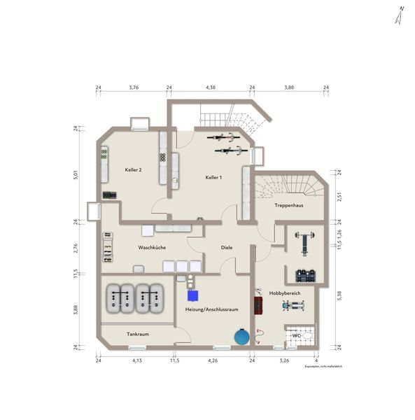 Das Gebäude erstreckt sich über drei Etagen und ist vollständig unterkellert. Im Kellergeschoss finden Sie großzügige Nutzflächen, den Heizungs- und Tankraum und einen teilweise ausgebauten Hobbybereich. Die beiden Wohneinheiten im Erdgeschoss sind aktuell vermietet, wobei eine Einheit direkten Zugang zum liebevoll angelegten Garten bietet. Die zweite Wohnung ist nach Süden ausgerichtet und besticht durch ihre lichtdurchfluteten, sehr gepflegten Räumlichkeiten.