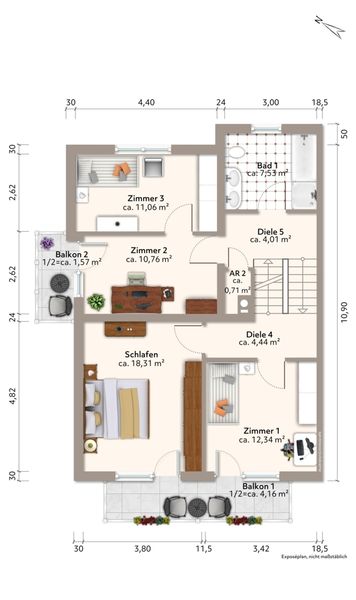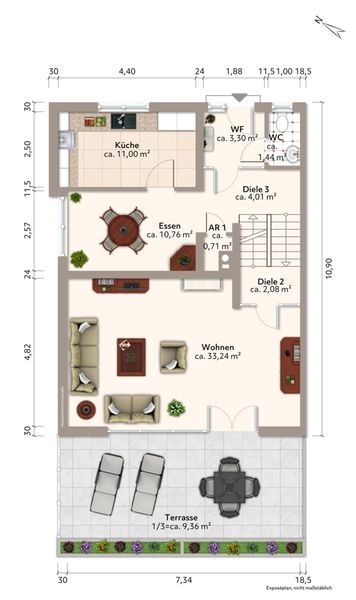 Auch die Innenausstattung – wie Böden, Bäder, Küche sowie die Balkone – sollte beim Investitionsvolumen berücksichtigt werden. Gleichzeitig eröffnet dies künftigen Eigentümern die Möglichkeit, das Haus vollständig nach eigenem Geschmack und modernen Wohnansprüchen zu gestalten.