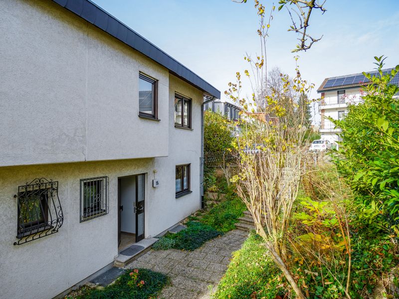 Die im Jahr 1980 errichtete Doppelhaushälfte präsentiert sich in einer charakteristischen Split-Level-Bauweise. Die versetzten Ebenen verleihen dem Haus eine besondere Wohnatmosphäre und bieten vielfältige Möglichkeiten der Nutzung und individuellen Gestaltung. Die Gesamtwohnfläche beträgt rund 159 m². Die Terrasse ist darin zur Hälfte und die beiden Balkon jeweils zu einem Drittel enthalten.